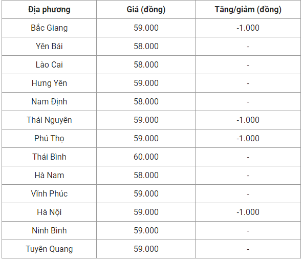 Các tỉnh còn lại không ghi nhận biến động mới về giá.