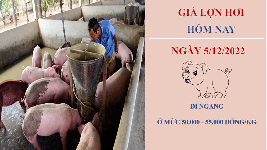 Giá heo hơi hôm nay 5/12/2022, đi ngang tại các địa phương so với cùng thời điểm hôm qua. hiện dao động trong khoảng 50.000 - 55.000 đồng/kg. Hiện tại, giá khảo sát ở các địa phương trong khoảng 50.000 - 55.000 đồng/kg.