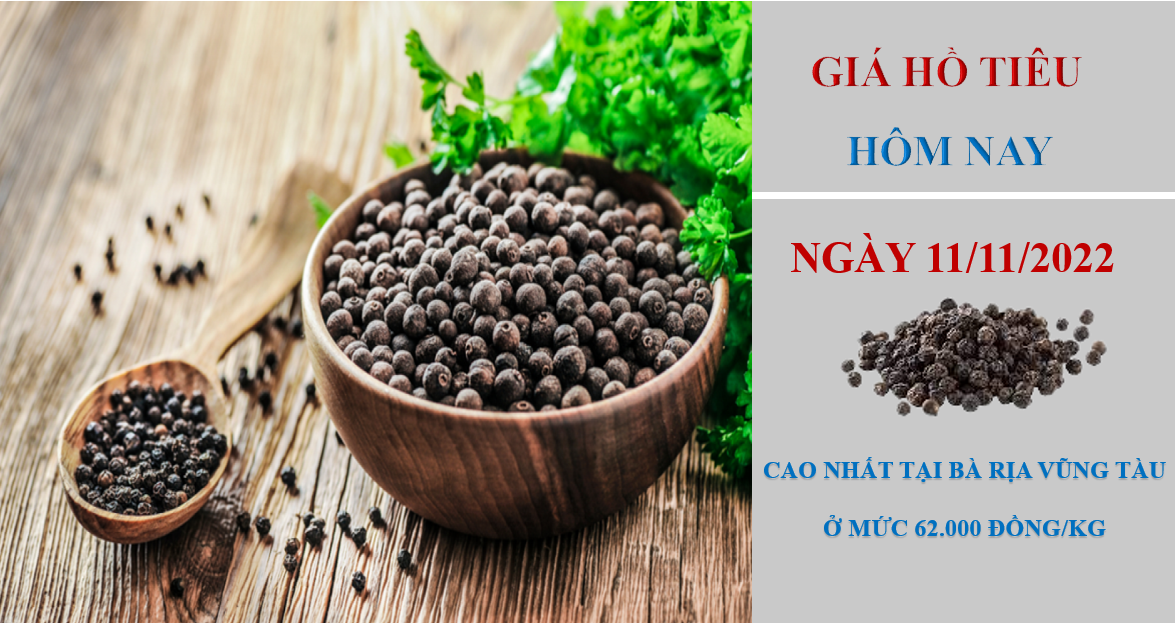 Giá hồ tiêu hôm nay 11/11/2022, thị trường trong nước không ghi nhận điều chỉnh mới so với cùng thời điểm hôm qua. Hiện giá hồ tiêu dao động trong khoảng 58.500 - 62.000 đồng/kg.