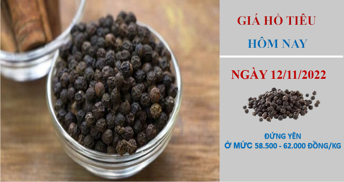 Giá hồ tiêu hôm nay 12/11/2022, thị trường trong nước không xuất hiện điều chỉnh mới tại các địa phương so với cùng thời điểm hôm qua. Hiện giá hồ tiêu dao động trong khoảng từ 58.500 - 62.000 đồng/kg.
