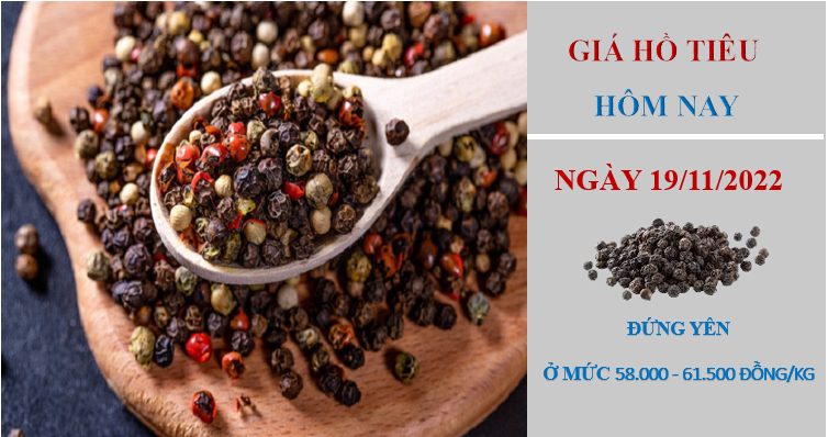 Giá hồ tiêu hôm nay 19/11/2022, thị trường trong nước nối tiếp chuỗi ngày ổn định tại các địa phương so với cùng thời điểm hôm qua. Hiện giá hồ tiêu đang dao động trong khoảng từ 58.000 - 61.500 đồng/kg.