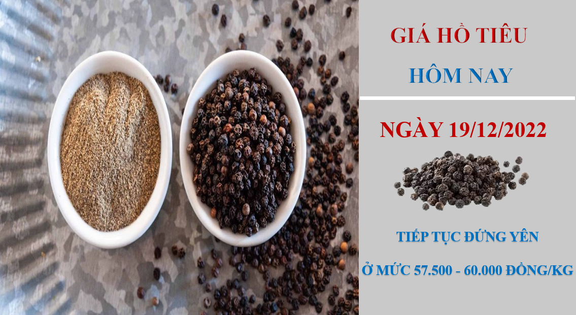 Giá tiêu hôm nay 19/12/2022, thị trường trong nước đứng yên tại các địa phương so với cùng thời điểm hôm qua. Hiện giá hồ tiêu đang dao động trong khoảng 57.500 - 60.000 đồng/kg.