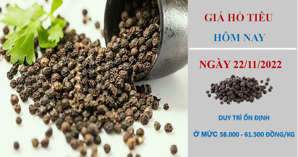 Giá hồ tiêu hôm nay 22/11/2022, thị trường trong nước không ghi nhận điều chỉnh mới tại các địa phương so với cùng thời điểm hôm qua. Hiện giá hồ tiêu đang dao động trong khoảng 58.000 - 61.500 đồng/kg.