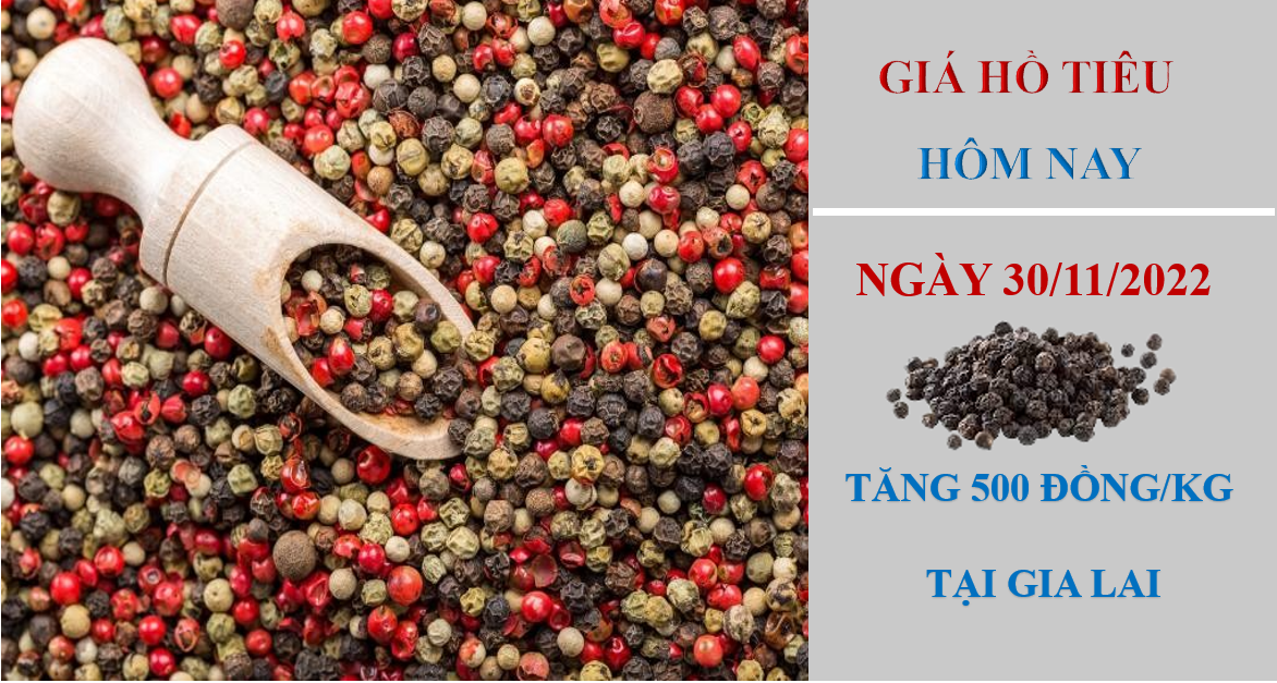 Giá hồ tiêu hôm nay 30/11/2022, ghi nhận tăng 500 đồng/kg tại Gia Lai, đi ngang tại những địa phương trọng điểm còn lại so với cùng thời điểm hôm qua. Hiện giá hồ tiêu đang dao động trong khoảng 58.500 - 62.000 đồng/kg.