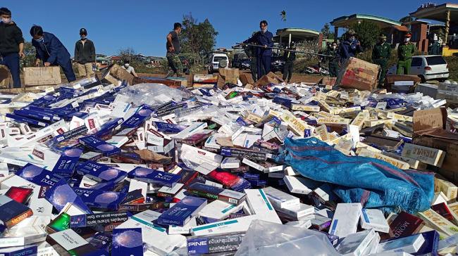 Gia Lai: Tiêu hủy gần 60.000 bao thuốc lá nhập lậu
