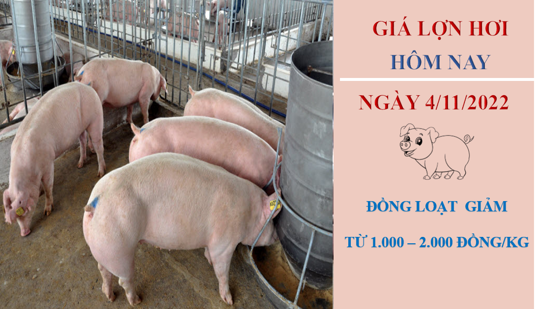 Giá lợn hơi hôm nay 4/11/2022, điều chỉnh giảm nhẹ từ 1.000 - 2.000 đồng/kg ở một số nơi so với cùng thời điểm hôm qua. Hiện tại, giá khảo sát ở các tỉnh thành dao động trong khoảng 51.000 - 58.000 đồng/kg.