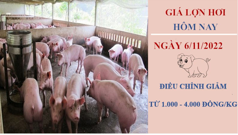 Giá lợn hơi hôm nay 6/11/2022, ghi nhận điều chỉnh giảm từ 1.000 - 4.000 đồng/kg tại các địa phương so với cùng thời điểm hôm qua. Hiện giá lợn hơi dao động trong khoảng từ 50.000 - 56.000 đồng/kg.
