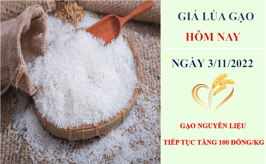 | Giá lúa gạo hôm nay 31/10/2022: Giá lúa gạo neo ở mức cao Giá lúa gạo hôm nay 1/11/2022: Giá gạo tăng 150 đồng/kg Giá lúa gạo hôm nay 2/11/2022: Giá gạo nguyên liệu tăng trở lại |