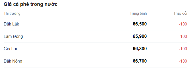 Giá cà phê hôm nay (3/10) giá cà phê trong nước giảm 100 đồng/kg, hiện giao dịch trung bình ở mức 66.400 đồng/kg.