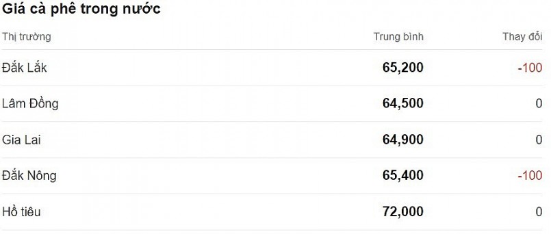 Giá cà phê cao nhất thu mua ở các vùng trọng điểm của Tây Nguyên (Đắk Lắk, Lâm Đồng, Gia Lai, Đắk Nông, Kon Tum) được ghi nhận ở mức 65.500 đ/kg.