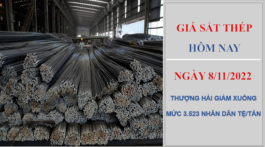 Giá sắt thép hôm nay 8/11/2022: Thượng Hải giảm về mức 3.523 nhân dân tệ/tấn.