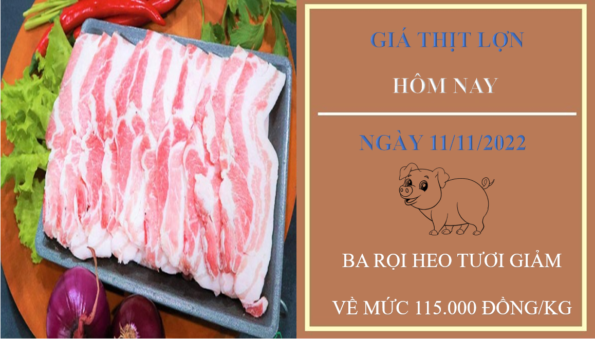 Giá thịt heo hôm nay 11/11/2022 được điều chỉnh giảm tại Công ty Thực phẩm bán lẻ đối với sản phẩm ba rọi heo tươi. Trong khi đó, các sản phẩm thịt heo tại WinMart đều ổn định kể từ ngày đầu tuần.