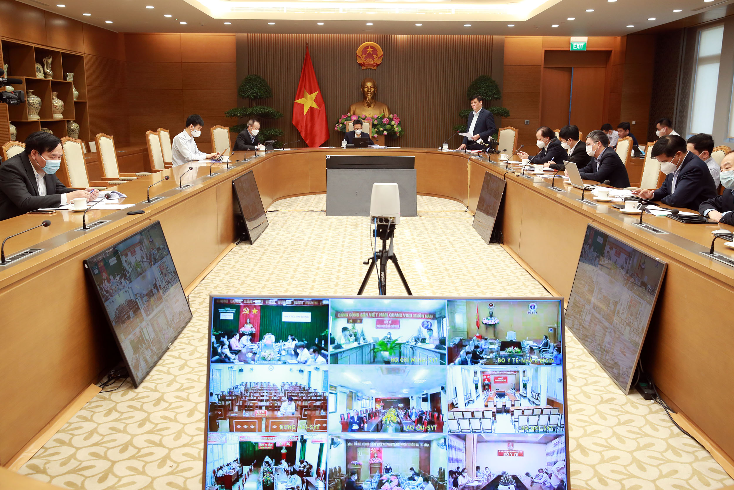 Chiều 01/12, tại Trụ sở Chính phủ, Phó Thủ tướng Vũ Đức Đam, Phó Trưởng Ban Chỉ đạo Quốc gia phòng, chống dịch COVID-19 chủ trì cuộc họp trực tuyến với lãnh đạo Bộ Y tế, một số bệnh viện Trung ương và 10 địa phương (TPHCM, Bình Dương, Đồng Nai, An Giang…) về công tác điều trị, giảm tử vong do dịch COVID-19.