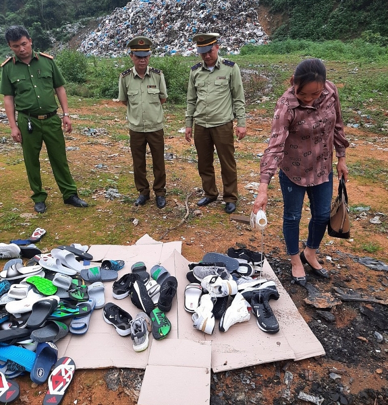 Hà Giang: Tiêu hủy hàng hóa giả mạo nhãn hiệu Adidas, Nike