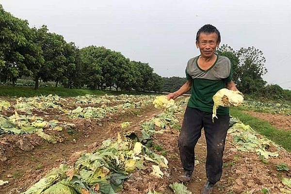 Tại vùng chuyên canh xã Tiền Yên và xã Song Phương (Hoài Đức, Hà Nội), nhiều loại rau xanh như: Bắp cải, su hào, cải ngồng,... đến lứa thu hoạch song vẫn vắng bóng thương lái thu mua. Giá quá rẻ, nhiều nông dân cũng chẳng buồn thu hoạch khiến rau quá lứa, ế hỏng đầy đồng.