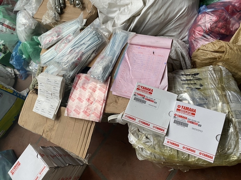 Kiểm đếm thực tế, Đoàn kiểm tra đã thu giữ 1.064 sản phẩm phụ tùng xe máy các loại và 1.864 bao bì vỏ hộp, túi nilong có gắn, in dập dấu hiệu giả mạo nhãn hiệu Yamaha, Honda.
