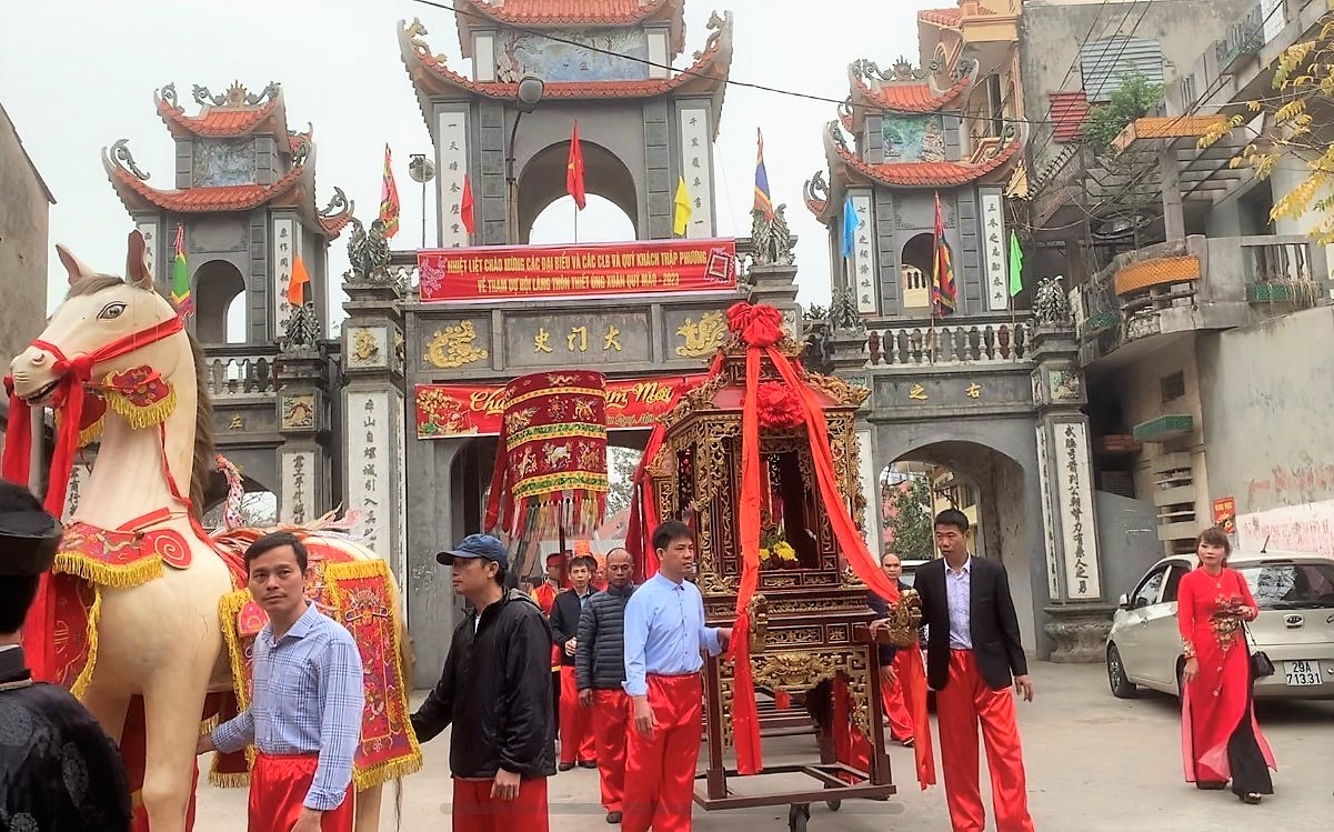 | Hội làng nghề Thiết Úng có lễ rước thành từ nghè về đình |