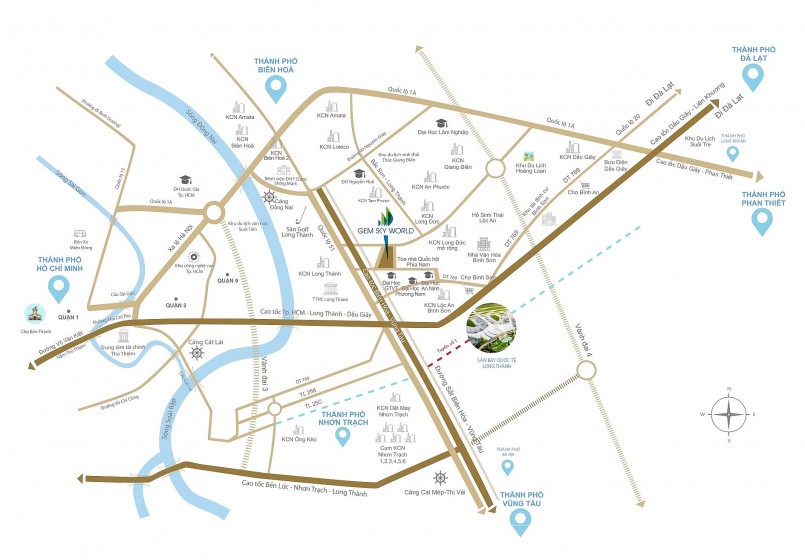 Nằm cách TP. HCM chỉ khoảng 30 phút di chuyển qua cao tốc và cách sân bay quốc tế Long Thành chỉ 5km, dự án khu đô thị thương mại giải trí Gem Sky World với quy mô 92,2ha, được phát triển bởi Tập đoàn Đất Xanh đang sở hữu nhiều lợi thế về đầu tư lẫn an cư.