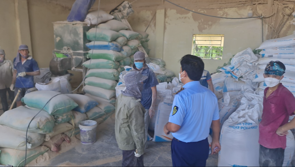 Qua 2 ngày kiểm đếm, phân loại tại hiện trường, Đoàn kiểm tra xác định có: Bao cám mỳ WHEAT POLLARD (nguyên gốc, chưa tháo chỉ): 600 bao loại 50kg/bao (tương đương 30.000 kg); Bao cám mỳ WHEAT POLLARD (nguyên gốc, đã tháo chỉ): 22 bao loại 50kg/bao (tương đương 1.100 kg); Bao cám mỳ WHEAT POLLARD (bao đóng gói lại, chưa may miệng bao): 01 bao loại 50kg/bao (tương đương 100 kg); Bao Cám mỳ WHEAT POLLARD (bao đóng gói lại, đã may hoàn chỉnh): 280 bao loại 50kg/bao (tương đương 14.000 kg);