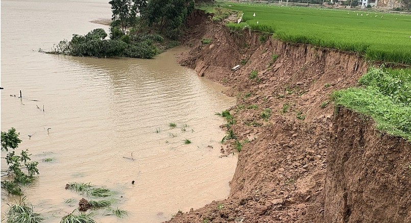 Hàng nghìn mét khối đất nông nghiệp bị sạt lở xuống sông Lục Nam