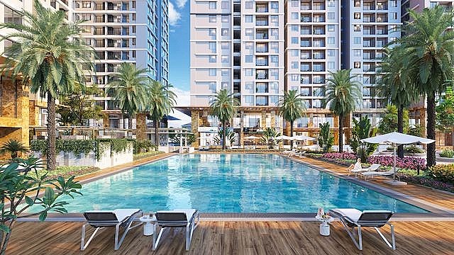 Ngay dưới thềm nhà là loạt tiện ích xanh đa đạng với điểm nhấn là khu vực bể bơi với tổng diện tích lên đến hơn 800m2, được thiết kế như tại resort gồm quầy bar, sàn tắm nắng, vườn thư giãn. Cùng với đó là loạt tiện ích hướng đến chăm sóc sức khỏe cho cư dân như: Vườn gym ngoài trời, khu thể thao đa năng, đường dạo bộ, khu vui chơi - vận động cho trẻ em… Sau một ngày làm việc trí óc căng thẳng, mệt mỏi, cư dân có thể dành thời gian tham gia các hoạt động thể chất để làm mới lại tinh thần, sức khỏe của bản thân.
