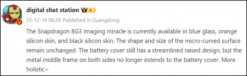 Blogger công nghệ Smart Pikachu tiếp tục nói thêm rằng mô-đun camera hình tròn trên Xiaomi 14 Ultra có thể có một đường cong nhẹ thay vì đường thẳng như model hiện tại. Nếu đúng thì điều này cho thấy thiết kế tổng thể sẽ không khác biệt đáng kể so với thiết kế tiền nhiệm.