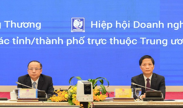 Chủ tịch Hiệp hội Doanh nghiệp vừa và nhỏ Việt Nam Nguyễn Văn Thân và Bộ trưởng Bộ Công thương Trần Tuấn Anh.