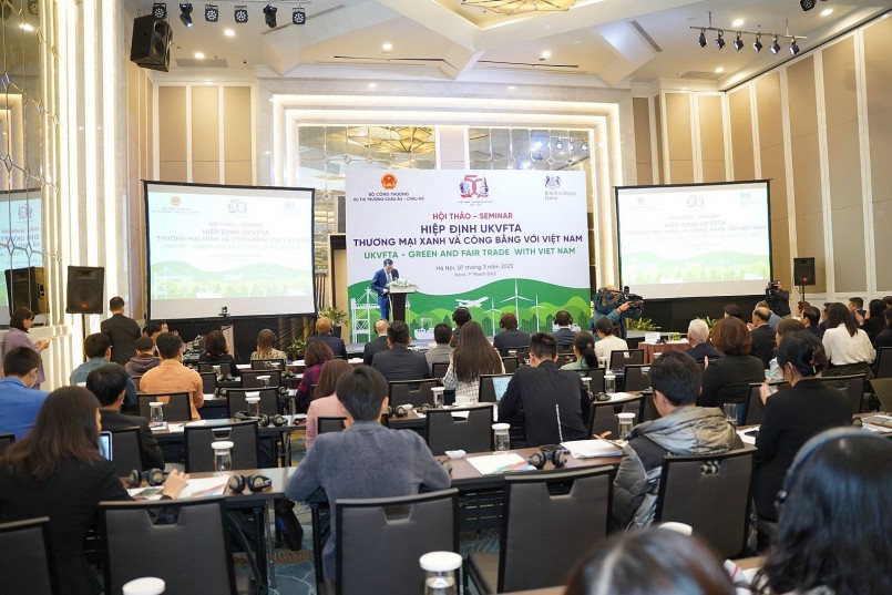 Ngày 7/3, tại Hà Nội Bộ Công Thương Việt Nam và Đại sứ quán Vương quốc Liên hiệp Anh và Bắc Ai-Len (Vương quốc Anh) tại Việt Nam đồng tổ chức Hội thảo “Hiệp định UKVFTA - Thương mại xanh và công bằng với Việt Nam”.
