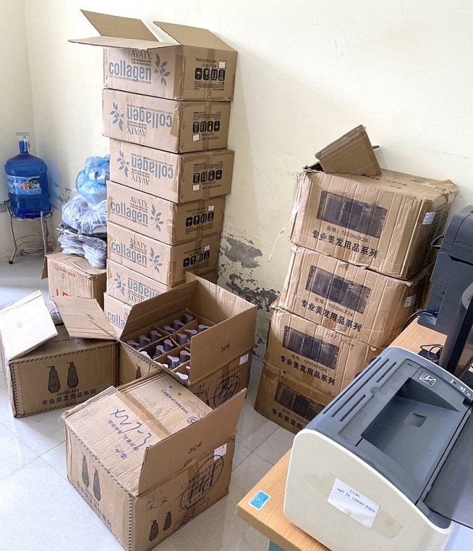 Tại thời điểm kiểm tra trên xe đang vận chuyển hàng hoá là mỹ phẩm gồm 700 tuýp thuốc nhuộm tóc, 65 chai dầu xả, không xuất trình được hóa đơn, chứng từ liên quan.