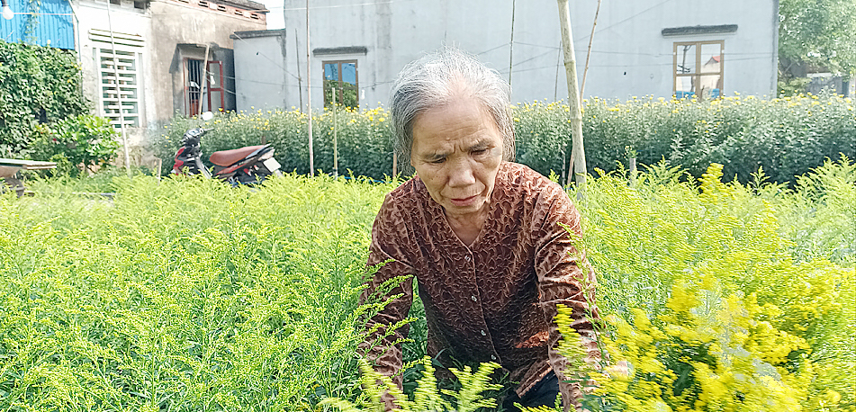 Bà Đỗ Thị Khánh bên vườn hoa của gia đình