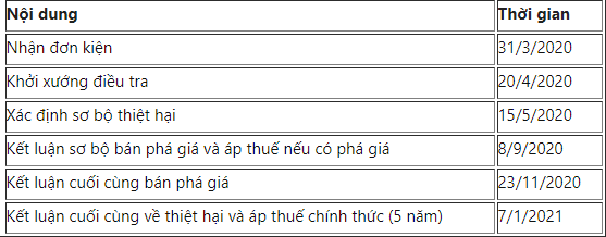 Cục Phòng vệ Thương mại cho biết, hiện nay, DOC đã gửi bản câu hỏi về lượng và giá trị (Q&V) đến một số nhà xuất khẩu của Việt Nam nhằm xem xét lựa chọn bị đơn bắt buộc (thời hạn trả lời bản câu hỏi này là ngày 06 tháng 5 năm 2020). Ngoài ra, DOC cũng khuyến nghị các doanh nghiệp tham gia trả lời bản câu hỏi này gửi kèm đề nghị tính toán mức thuế riêng rẽ thay vì chịu mức thuế chung.
