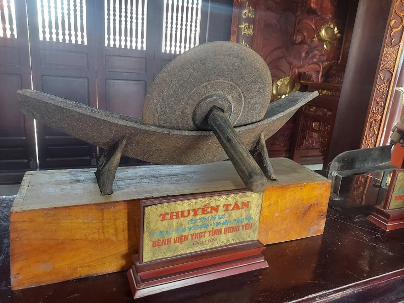 | Một số hiện vật là công cụ làm nghề thuốc trưng bày ở Nhà thờ Hải Thượng Lãn Ông Lê Hữu Trác. |