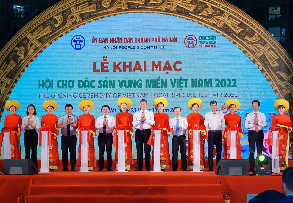 | Nghi lễ cắt băng khai mạc Hội chợ Đặc sản Vùng miền Việt Nam 2022. |