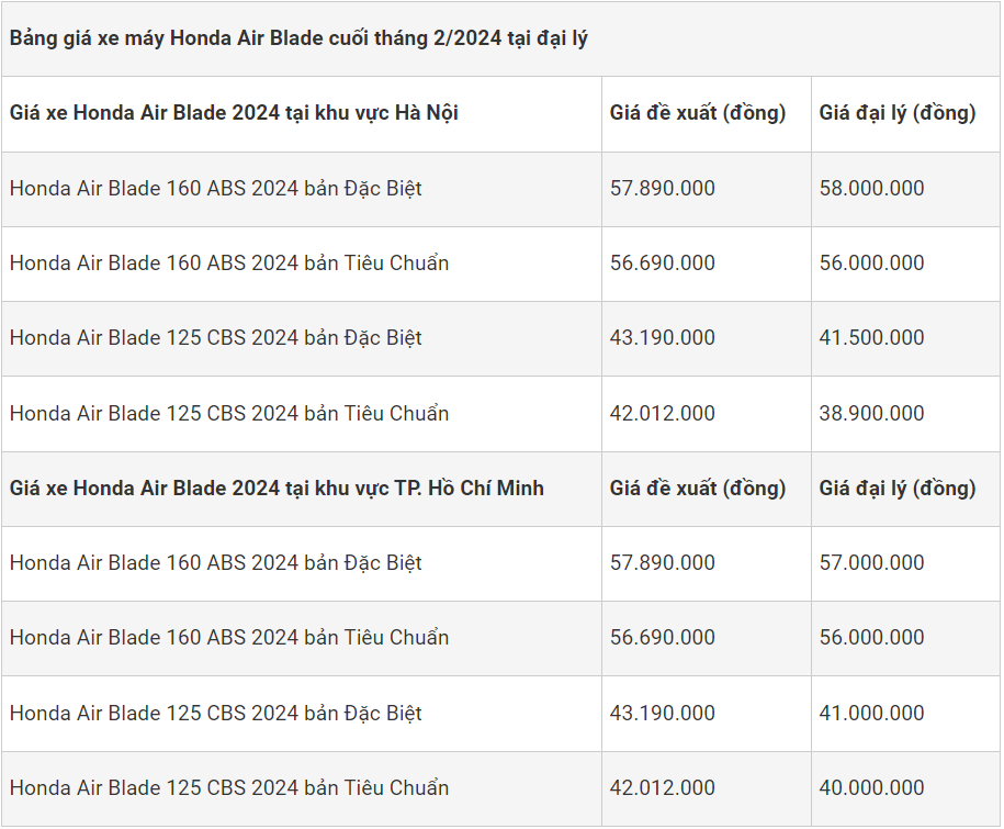Lưu ý: Bảng giá xe Honda Air Blade nêu trên chỉ mang tính tham khảo, khách hàng có thể đến đại lý xe máy Honda nơi gần nhất để biết thêm chi tiết.