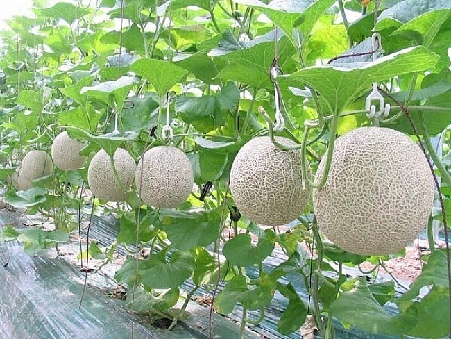 | Mô hình sản phẩm dưa lưới, dưa vàng của HTX Nông nghiệp Ngũ Phúc. |