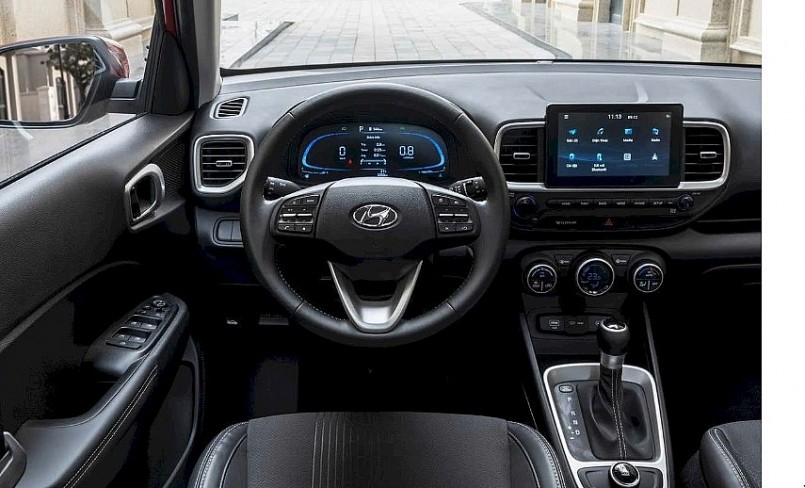 Tiến vào trong nội thất, Hyundai Venue được thiết kế hiện đại cùng loạt trang bị đáng chú ý như màn hình trung tâm kích thước 8 inch, kết nối Apple CarPlay và Android Auto, bản đồ dẫn đường, bảng đồng hồ dạng kỹ thuật số, có thể thay đổi giao diện theo chế độ lái, ghế ngồi bọc da pha nỉ có cổng sạc Type-C, trang bị xuất hiện đầu tiên trong phân khúc, ghế sau có cửa gió điều hòa riêng.
