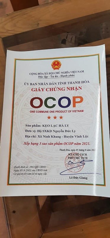 Sản phẩm kẹo lạc Hà Ly đã được các cấp kiểm định vệ sinh an toàn thực phẩm, công bố chất lượng sản phẩm và đã đăng ký nhãn hiệu độc quyền. Năm 2021 kẹo lạc Hà Ly đã Hội đồng thẩm định các cấp đánh giá, xếp hạng sản phẩm OCOP 3 sao.