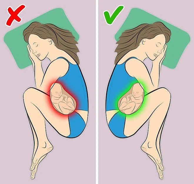 Nằm nghiêng bên phải trong khi ngủ được xem là tư thế có ảnh hưởng xấu đến sức khỏe. Phụ nữ mang thai khi ngủ nằm nghiêng sang phải sẽ gây tăng áp lực đè ép lên mạch máu và các cơ quan trong ổ bụng, cản trở hoạt động và lưu thông máu trong cơ thể, giảm lượng máu qua bánh nhau đến nuôi thai nhi.