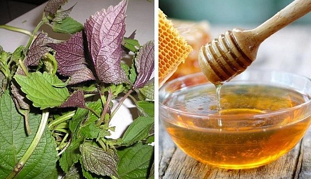 Làm sạch 10 lá tía tô tươi rồi đem xay nhuyễn. Trộn 3 thìa mật ong nguyên chất vào phần lá đã xay xong.
