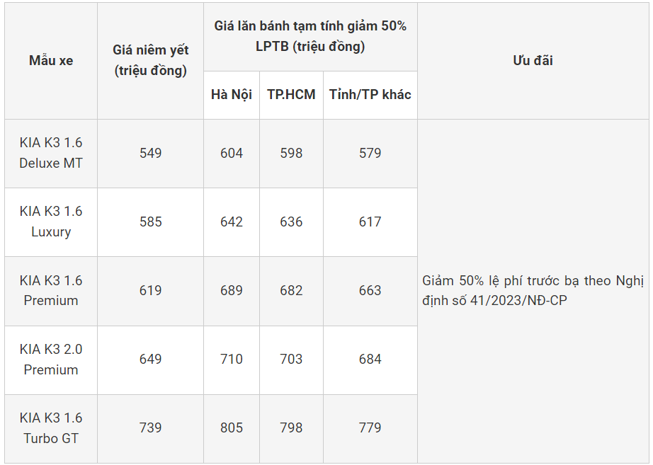 Tham khảo giá niêm yết và lăn bánh tạm tính xe KIA K3 giữa tháng 11/2023: