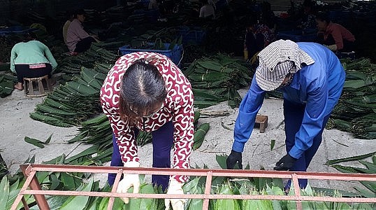 Sau thời gian tìm hiểu, chị Triệu liên hệ được với đầu mối mua lá tre về gói bánh cổ truyền ở Đài Loan, mỗi tháng xuất hàng chục tấn sang đó. Không chỉ có thu nhập cao và ổn định, chị còn tạo công ăn việc làm cho 20 người ở địa phương.
