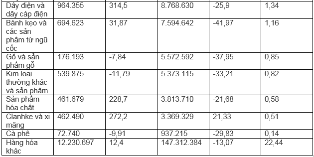 Số liệu xuất khẩu hàng hóa Việt Nam sang Lào năm 2022