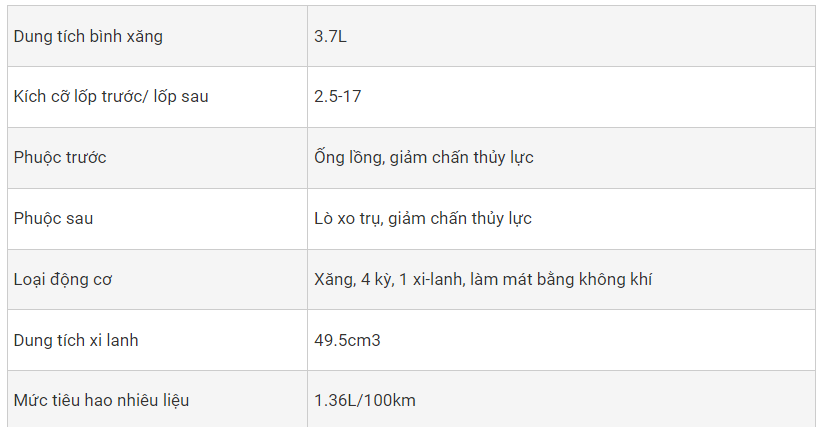 Dung tích bình xăng khá lớn, 3.5L. Hiện tại, xe máy 50cc Kymco Visar S đang được bán tại cửa hàng xe điện Việt Thanh với giá 18.660.000 đồng.
