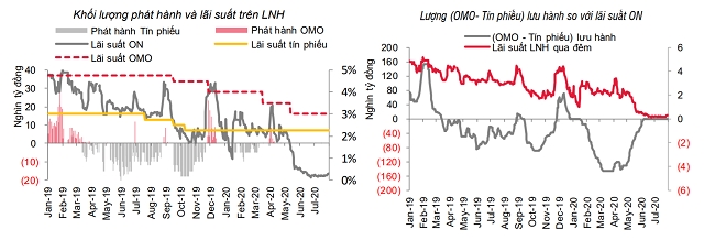 TH&SP Trung tâm Phân tích CTCP Chứng khoán SSI- SSI Research có báo cáo thị trường tiền tệ tuần 27/7 - 31/7. NHNN không thực hiện giao dịch mới, khép lại một tháng không bơm/hút ròng trên thị trường mở. Thanh khoản các ngân hàng thương mại (NHTM) dồi dào, lãi suất dao động ở vùng thấp trong suốt tháng và nhích nhẹ vào cuối tháng. Lãi suất qua đêm ở mức 0,3%/năm và lãi suất kỳ hạn 1 tuần là 0,39%/năm, tăng lần lượt 10 điểm cơ bản và 9 điểm cơ bản so với cuối tuần liền trước.
