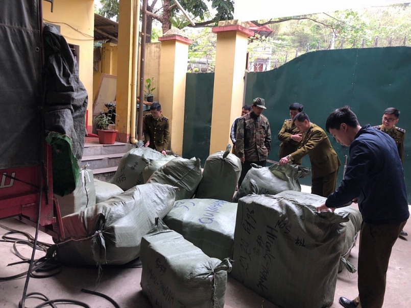 | Lực lượng chức năng kiểm tra hàng hóa vi phạm |