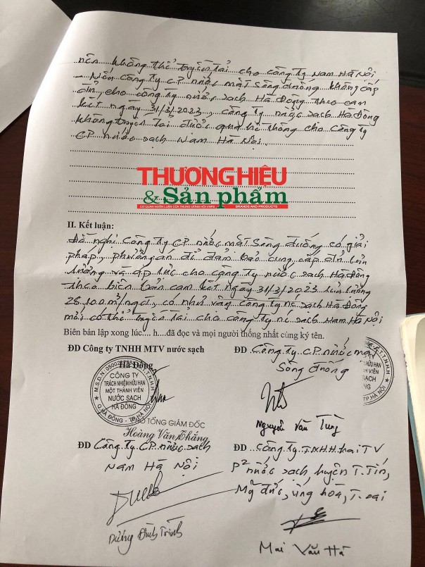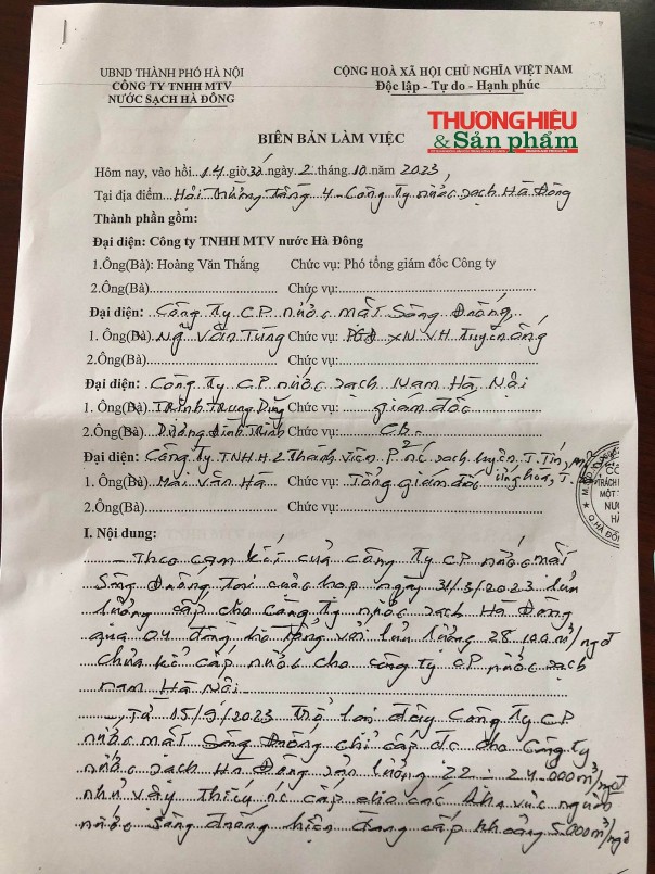 | Biên bản làm việc của Công ty TNHH MTV nước sạch Hà Đông vào ngày 02/10/2023 |