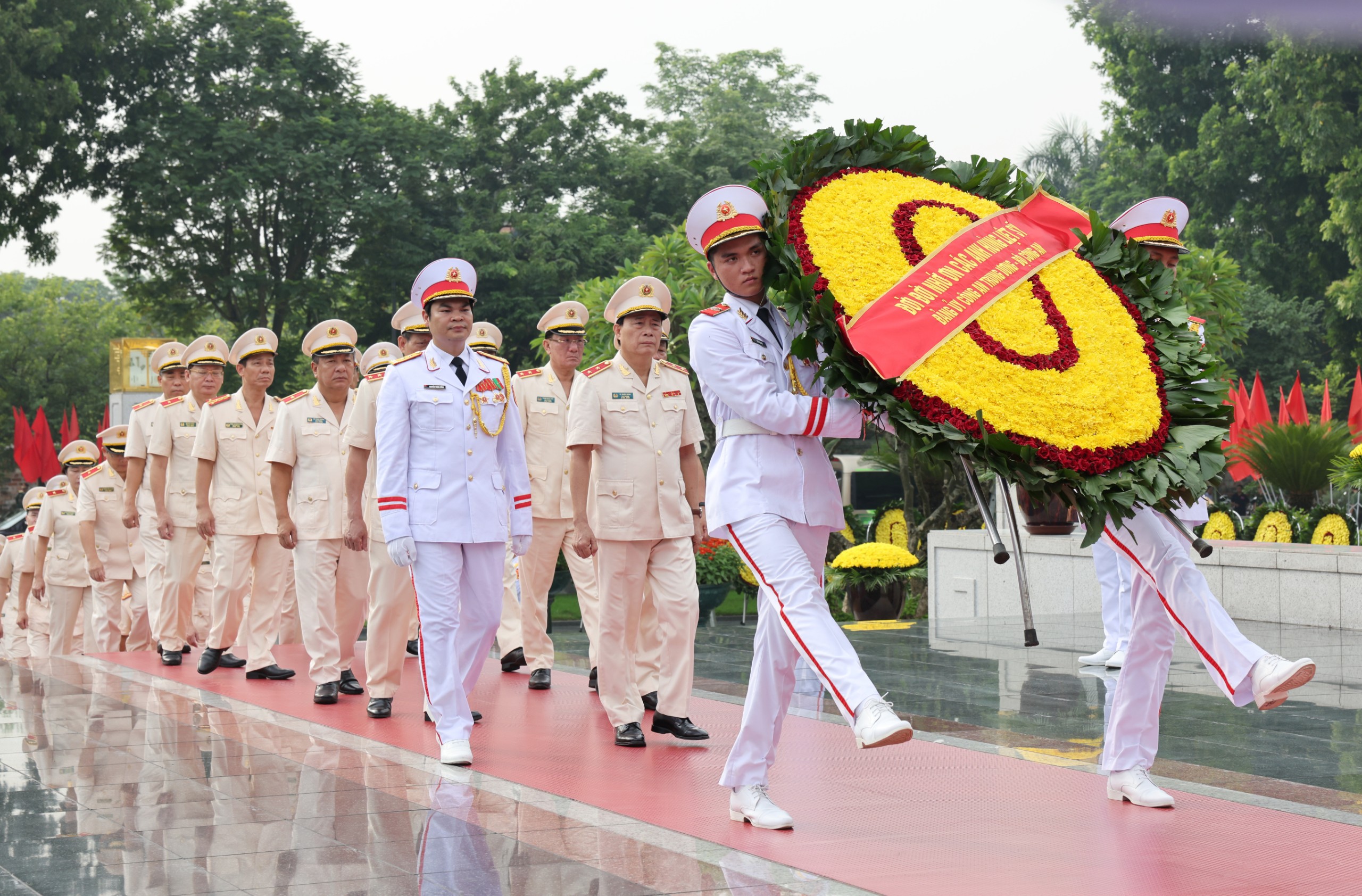 | Các Đoàn đại biểu Quân ủy Trung ương, Bộ Quốc phòng; Đảng ủy Công an Trung ương, Bộ Công an và Đoàn đại biểu TP Hà Nội tưởng niệm các Anh hùng liệt sĩ. |