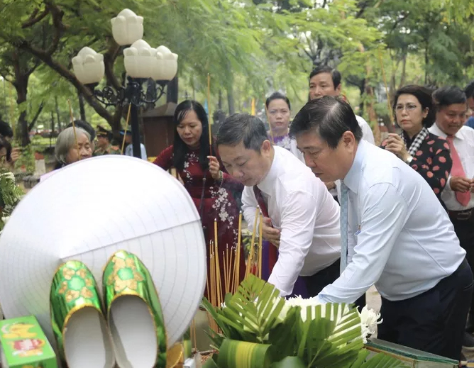 Các đại biểu đã dâng hương, dâng hoa với lòng thành kính hướng về anh linh các bậc tiền nhân, các anh hùng liệt sĩ, đồng bào yêu nước. Vòng hoa của đoàn mang dòng chữ: Thành ủy, HĐND, UBND, Ủy ban MTTQ Việt Nam TPHCM đời đời nhớ ơn các Anh hùng liệt sỹ.