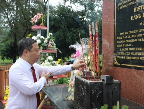 Tại đây, các đại biểu đã thắp những nén hương thơm tri ân sâu sắc đối với các anh hùng liệt sỹ đã đấu tranh bất khuất và hy sinh vẻ vang vì độc lập, tự do của Tổ quốc, vì lý tưởng của Đảng Cộng sản Việt Nam, làm cho Côn Đảo trở thành một mảnh đất thiêng bậc nhất của Việt Nam.