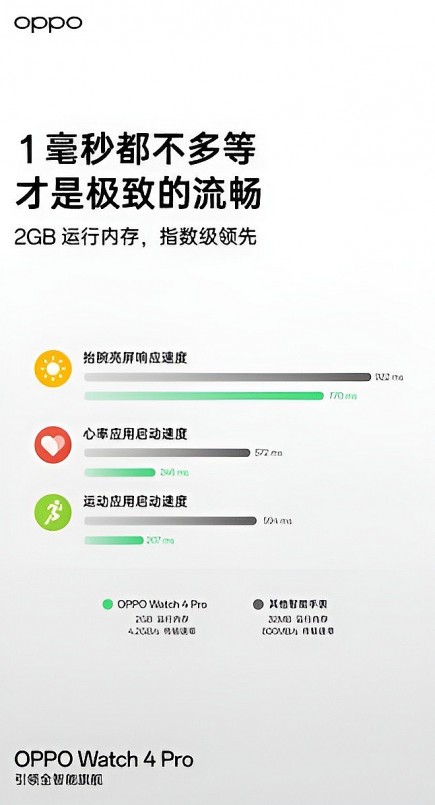 Đáng chú ý, thời gian phản hồi của màn hình được cải thiện từ 922ms lên 770ms, trong khi tốc độ khởi chạy ứng dụng đo nhịp tim giảm từ 572ms xuống 246ms và thời gian khởi động ứng dụng thể thao được rút ngắn từ 594ms xuống 207ms.